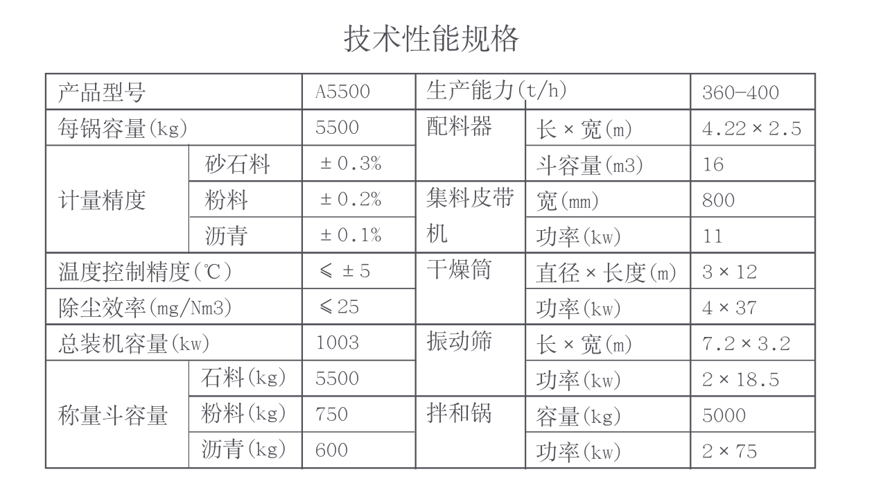 愛(ài)思泰克5500型瀝青拌合站擁有:除塵系統(tǒng)、配料系統(tǒng)、干燥系統(tǒng)、粉料供給系統(tǒng)、瀝青導(dǎo)熱油供給系統(tǒng)、高效振動(dòng)篩、稱量攪拌系統(tǒng)、成品料倉(cāng)、中心控制系統(tǒng)、熱料提升機(jī)、大型保溫室熱料倉(cāng)。